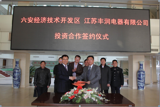 12月20日,江苏丰润电器有限公司与六安经济开发区签约,投资建设六安丰润电器有限公司。该项目为6686在线注册招商引进,占地约100亩,项目总投资 1.5亿元,其中固定资产投资不低于1.2亿元,项目计划2011年5月开工建设,2013...